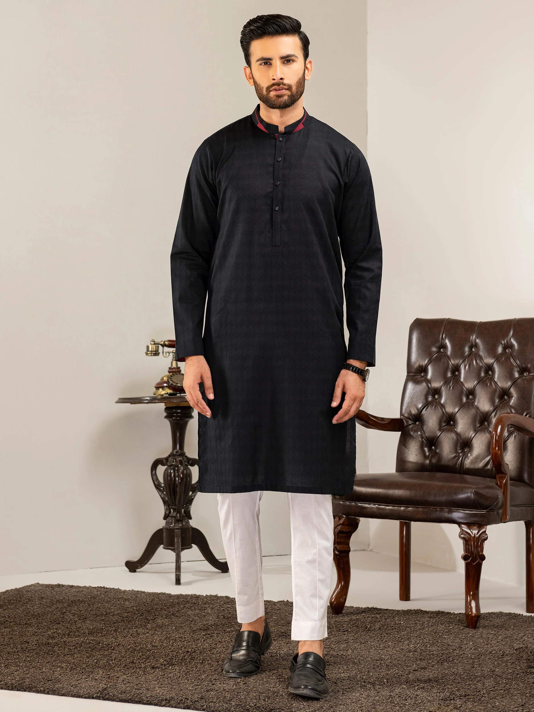 Self Jacquard Kurta