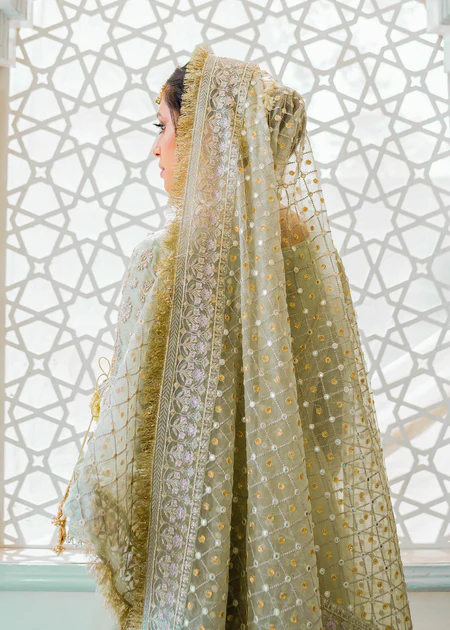 Unstitched 2 Piece Embroidered Lawn Suit (Shirt+Dupatta) Embroidered neck panel with sequin detailing Geometric printed front, back and sleeves Floral printed border and cuff patti Multi-tone floral and paisley printed dupattta